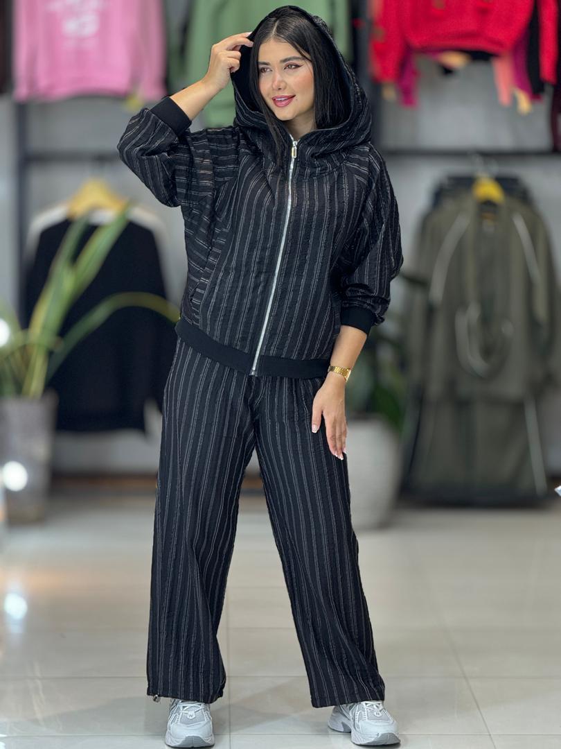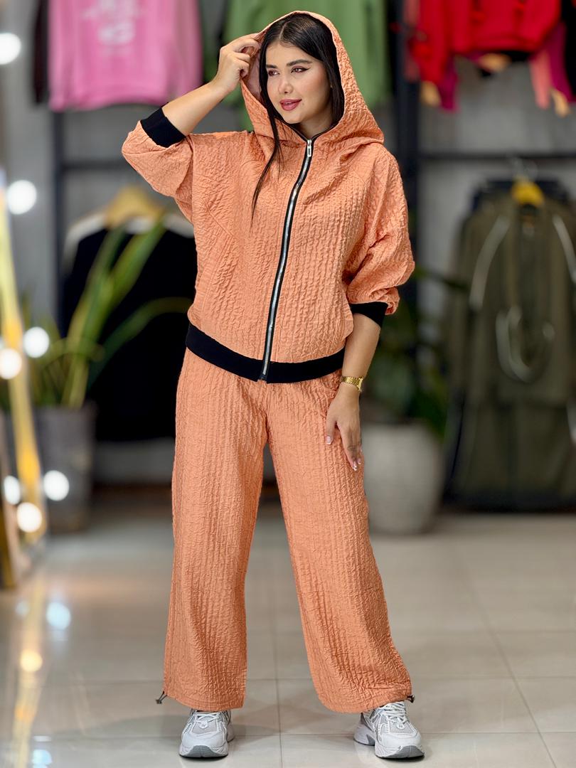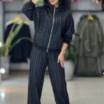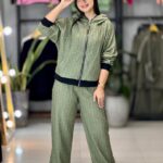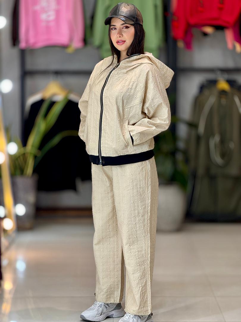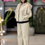 این ست زیبا و جذاب از جنس بارونی لایه دار و جلو زیپ و دکمه می باشد و شلوار کار از پشت کمرکش می باشد.