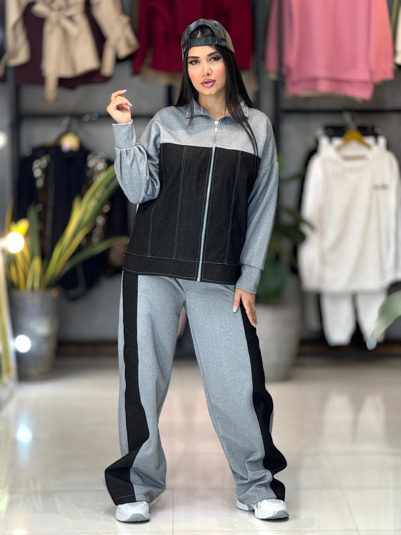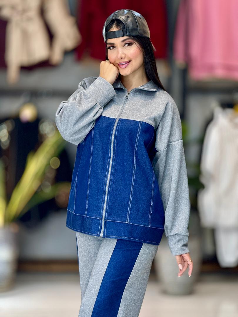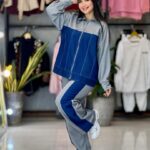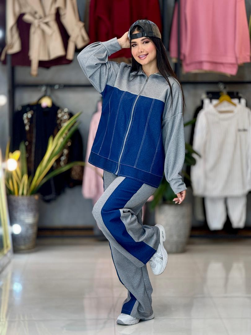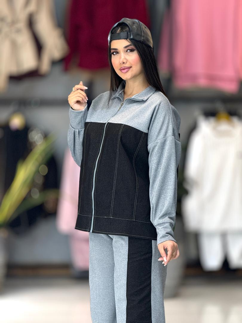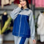 ست سویشرت شلوار با ترکیب پارچه جین و فلامنت