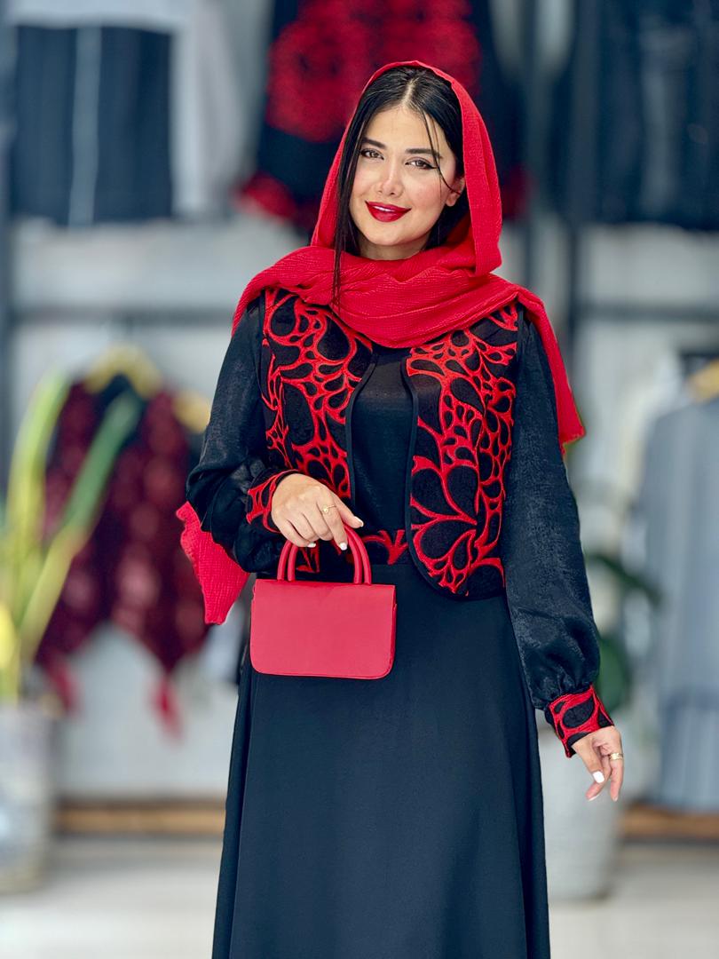 | جنس پارچه | جلیقه مخمل گلدار-شومیز:کوپرا دامن : اسکاچی |