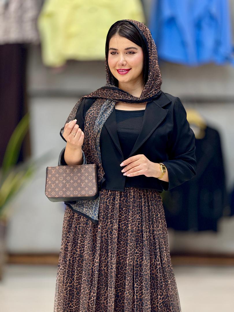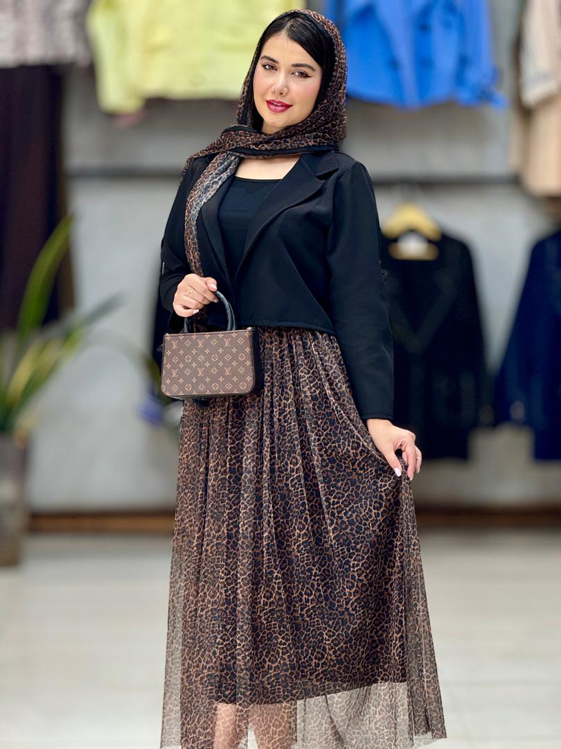 ست سه تیکه کت /دامن/شال پلنگی✨