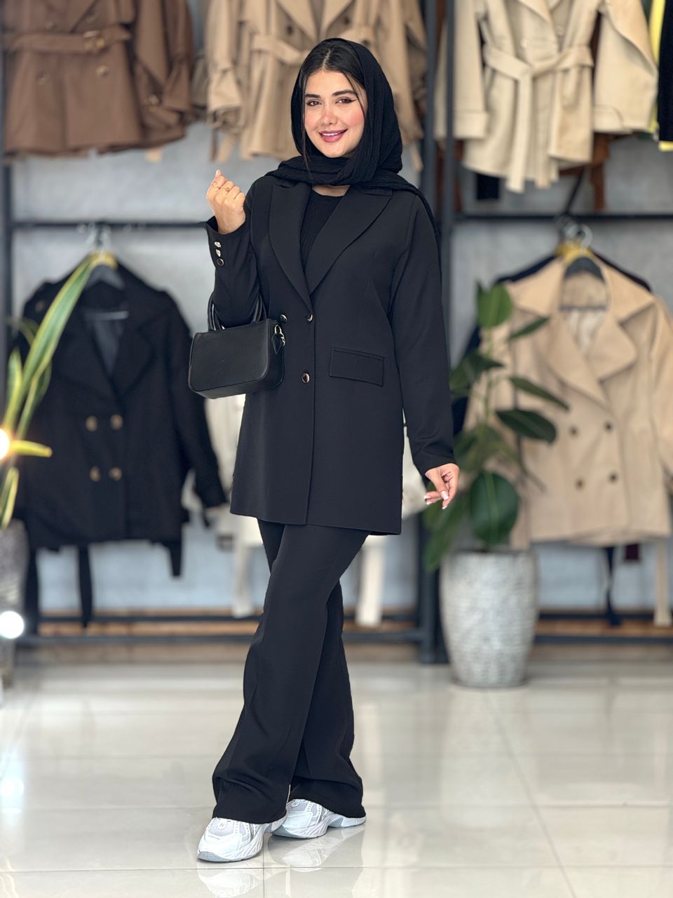 یقه انگلیسی کت، جلوه‌ای کلاسیک و مرتب به ظاهر می‌بخشد و جلوه‌ی دکمه‌های زیبا همراه با جیب نما، استایل را کامل می‌کند 👔